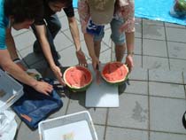 2006.7.22(土)に名古屋市千種区のまちづくり事業「千の種あかし隊」の第7回目のワークショップが開かれました。今回の活動内容は、覚王山の日泰寺から名古屋市立大学北千種キャンパスまでの道のりを千の種を探りながらサイクリングをするという企画でした。 活動内容は、 @グループをわけ、グループごとにテーマをくじ引きで決める Aどのルートを通ってゴール地点まで行くかグループ内で話し合い B千の種を見つけに、出発! Cグループごとに千の種を写真に撮りながら自転車で走る Dゴール! E撮った写真やルートをを巨大マップにまとめる Fグループごとに見つけてきた千の種を発表 G投票でベストポイントショットを決める Hおわりのあいさつ +@みんなでスイカ割りを楽しんで、終了 です。